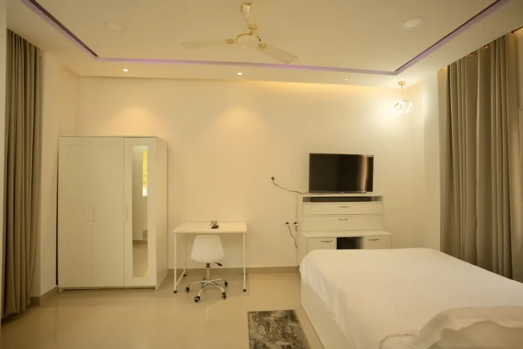 Step into elegance with our brand-new Luxe Room at White Lotus. Designed for comfort and style, this spacious retreat features a sleek modular kitchen, a cozy living room, and not one but two Smart TVs for ultimate entertainment. Whether you’re here for a short getaway or an extended stay, this modern space offers the perfect blend of luxury and convenience.